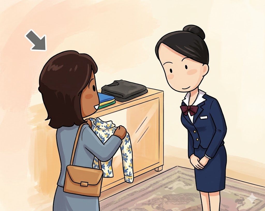 ➡ (やじるし) の 人は 何と 言いますか。1 から 3 の 中から、いちばん いい ものを 一つ えらんで ください。
