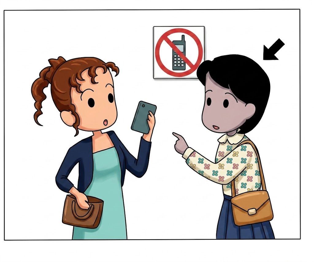 もんだい 3 では、えを 見ながら しつもんを 聞いて ください。➡(やじるし)の 人は 何と 言いますか。1 から 3 の 中から、いちばんいい ものを 一つ えらんで ください。