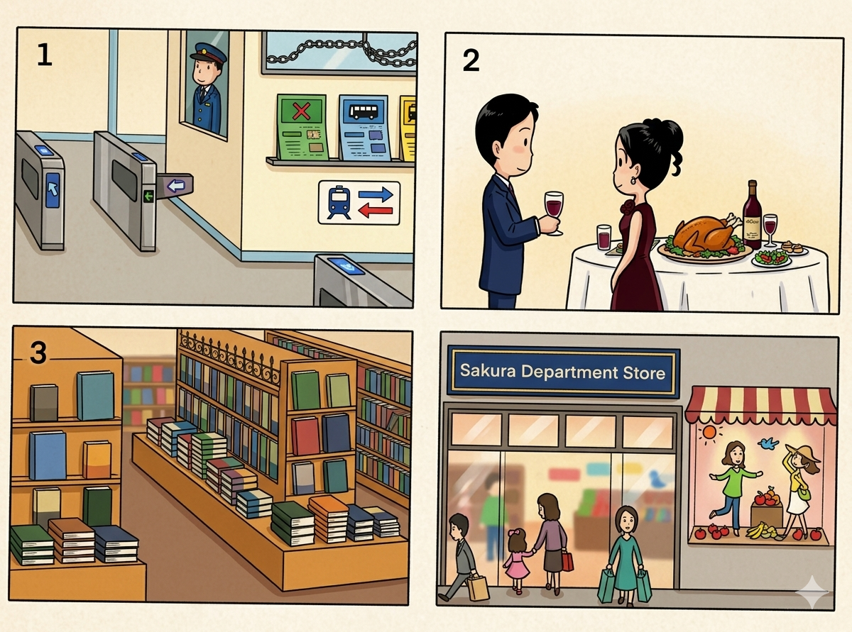 もんだい 1 では、はじめに しつもんを きいて ください。それから はなしを きいて、もんだいようしの 1 から 4 の なかから、いちばん いい ものを ひとつ えらんで ください。