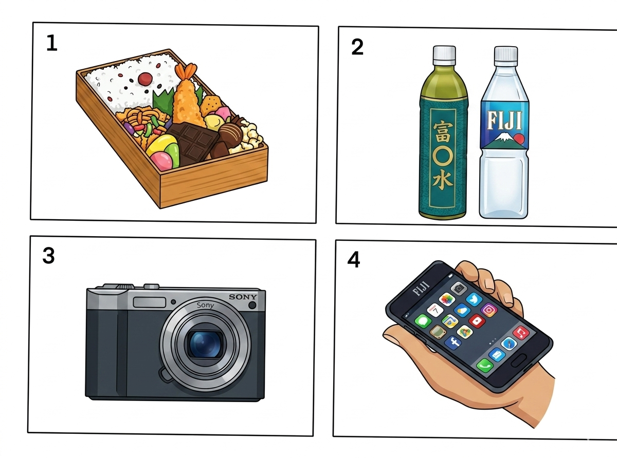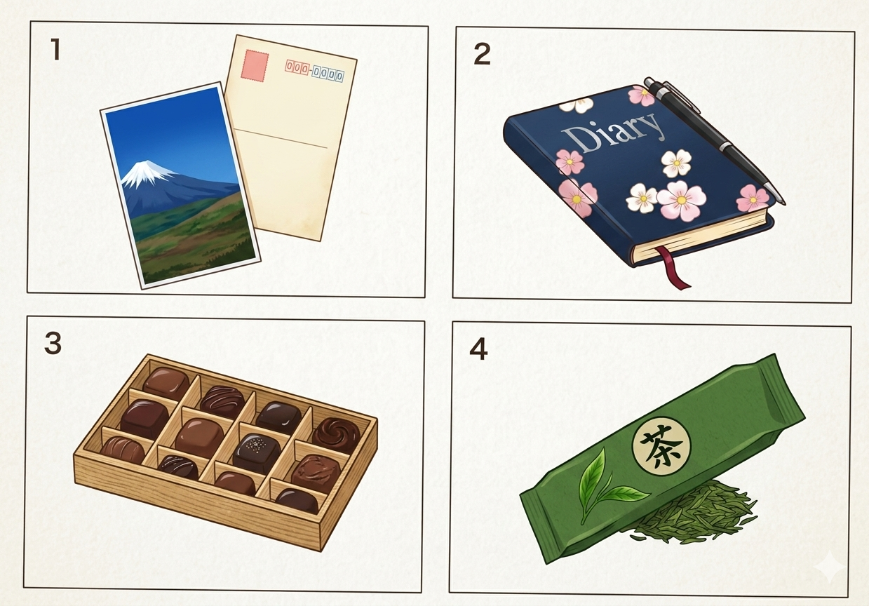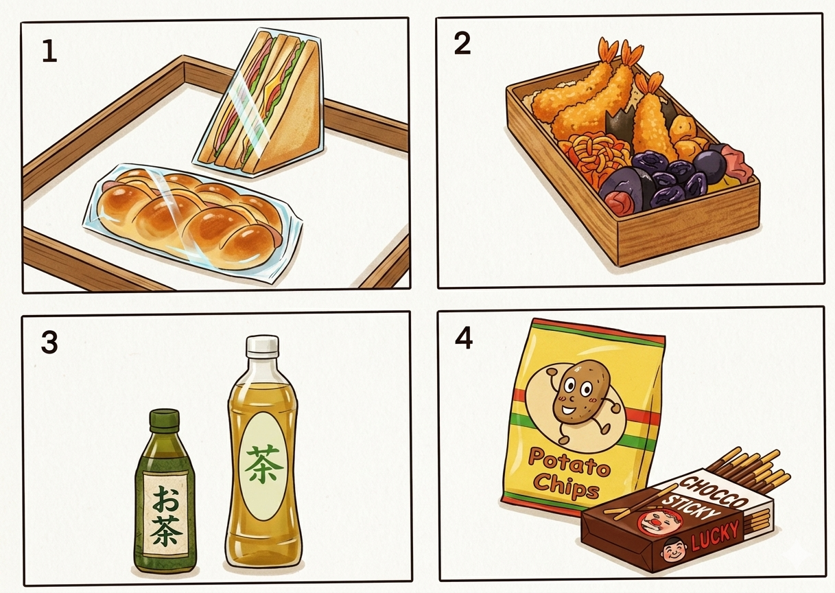 | 1 ぼうし | 2 ネクタイ | 3 ペン | 4 はな |