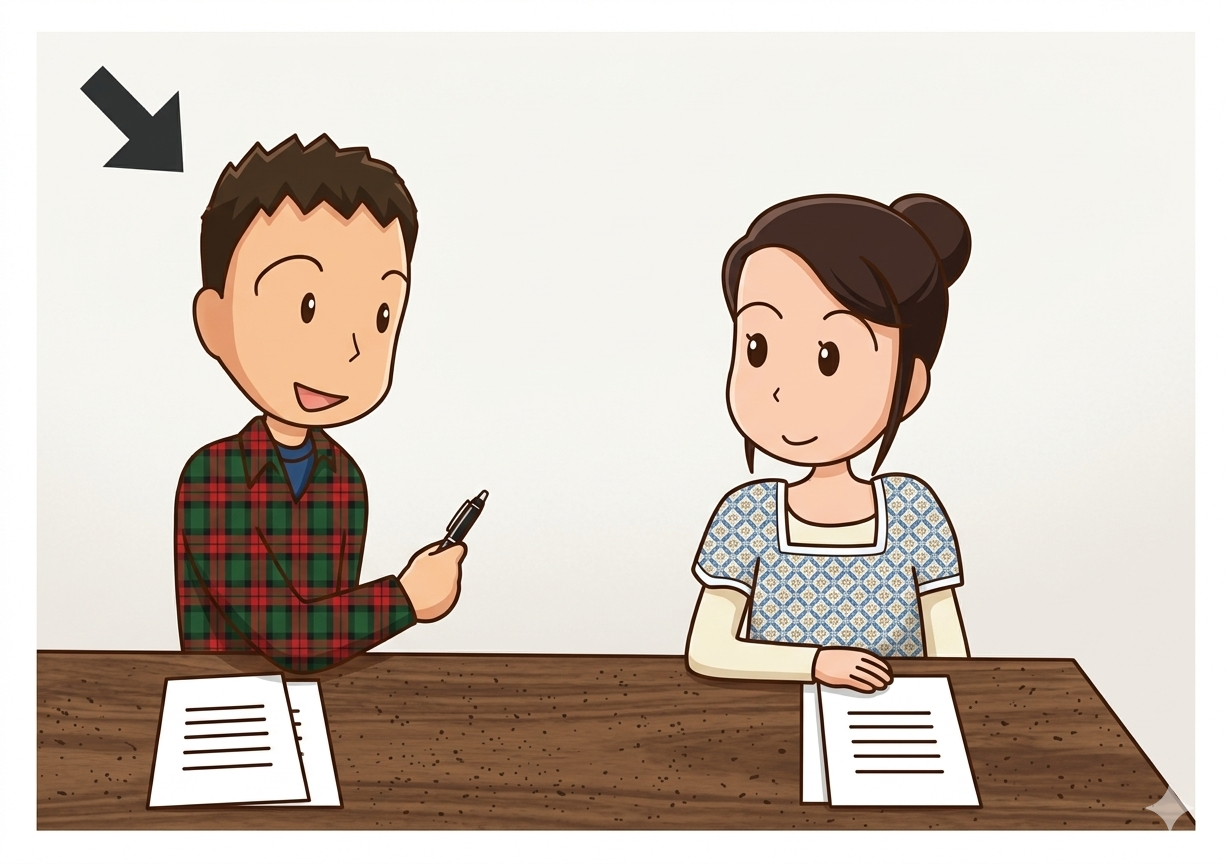 もんだい 3 では、えを みながら しつもんを きいて ください。 ➡(やじるし)の ひとは なんと いいますか。1 から 3 の なかから、 いちばん いい ものを ひとつ えらんで ください。