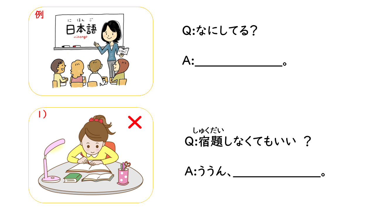 A: 日本語 勉強してる。