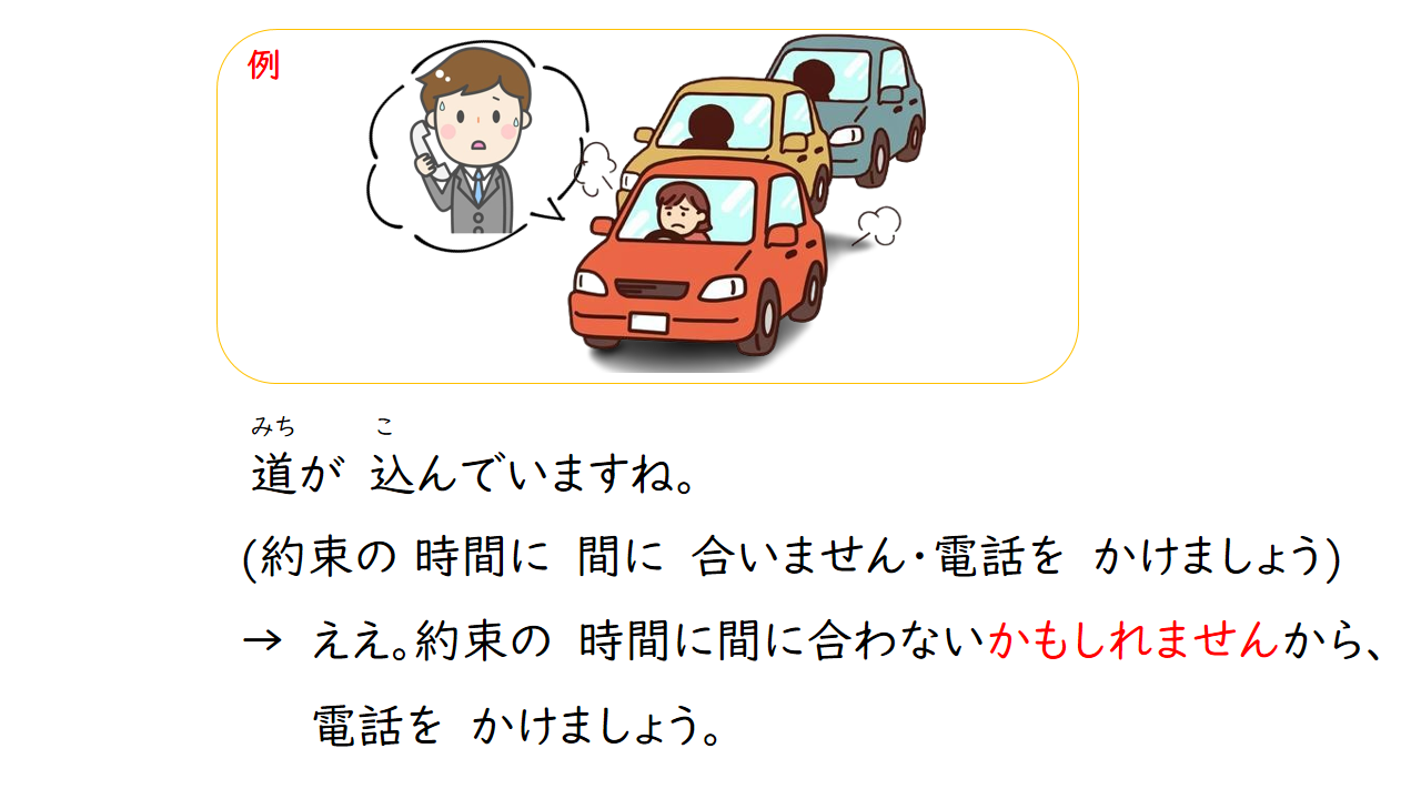 1.Q: 帰りは 道が 込んでいますか。(「かもしれません」を使って答える)