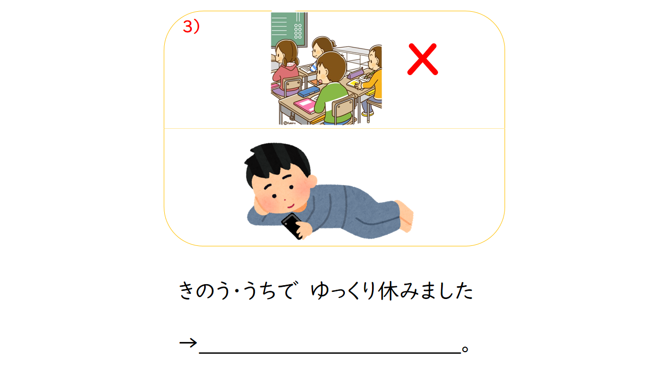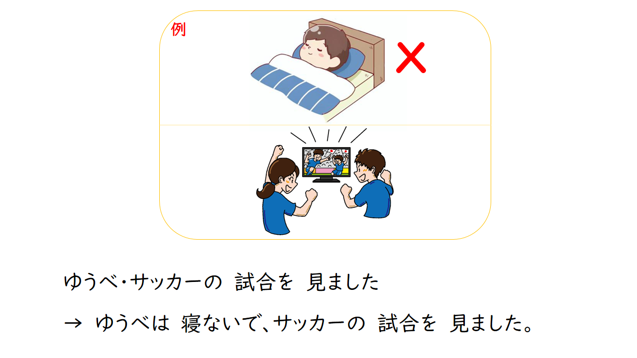 3.仕事を しないで、 遊んで います。