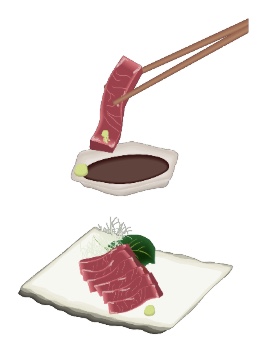 [しょうゆを~] つけます |