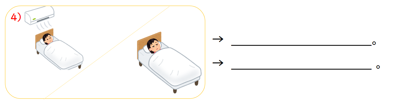 2.Q: エアコンを つけて 寝ますか。(「いいえ」で答える)