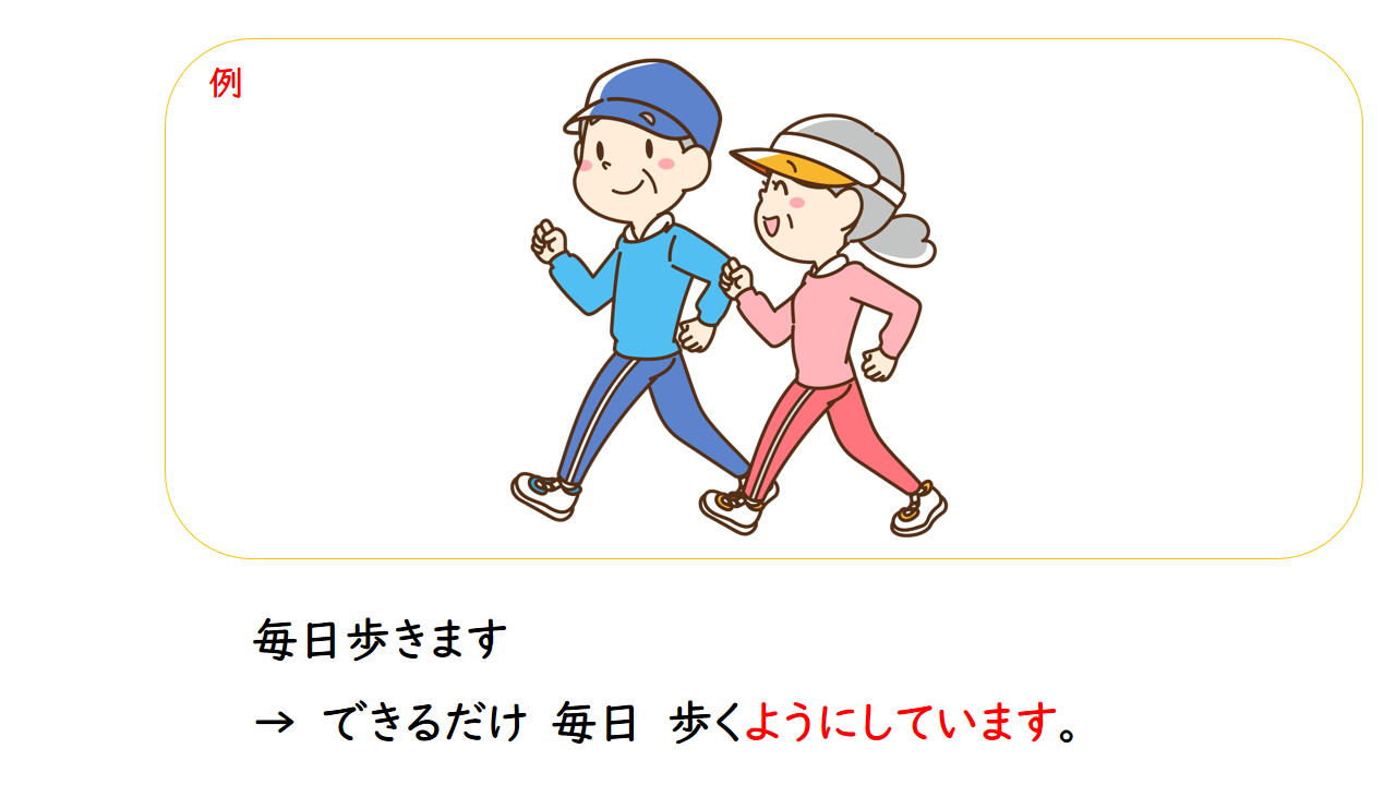 2.Q: エレベーターを 使わないんですか。(「ようにしています」を使って答える)