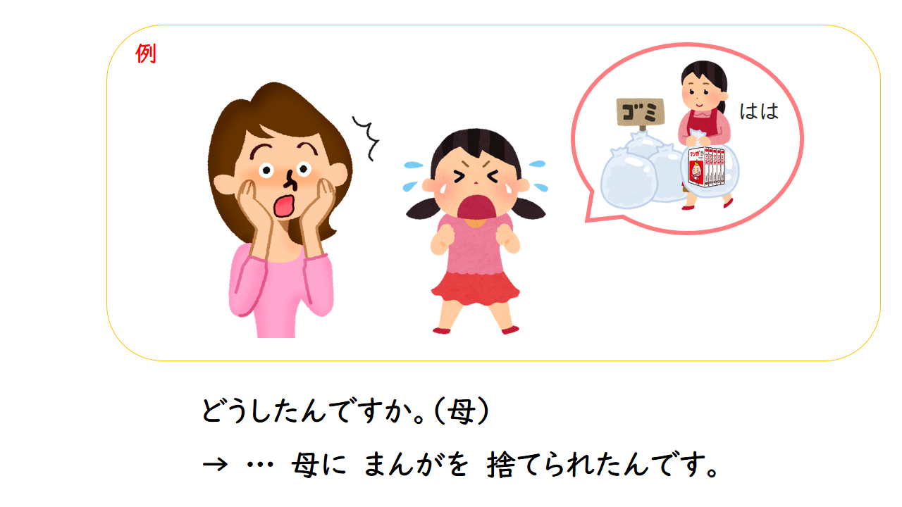 1.わたしは だれかに 自転車を とられました