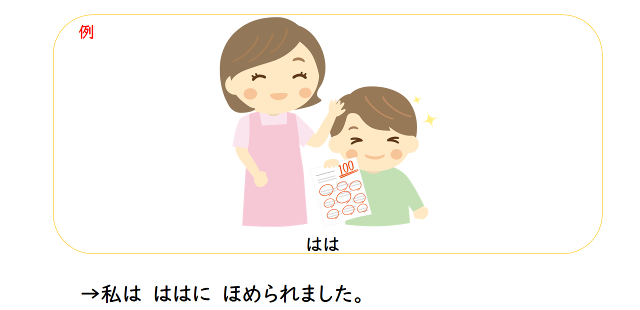 1.わたしは 部長ぶちょう ほめられました。