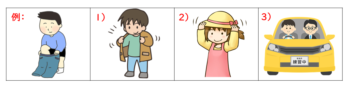 例:すみません。このズボンを はいて みても いいですか。
