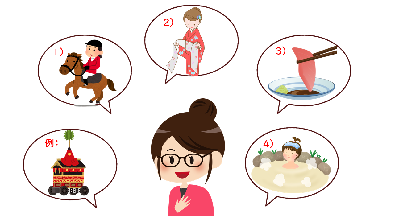 1.Q: 日本に 行ったら、何を やって みたいですか。