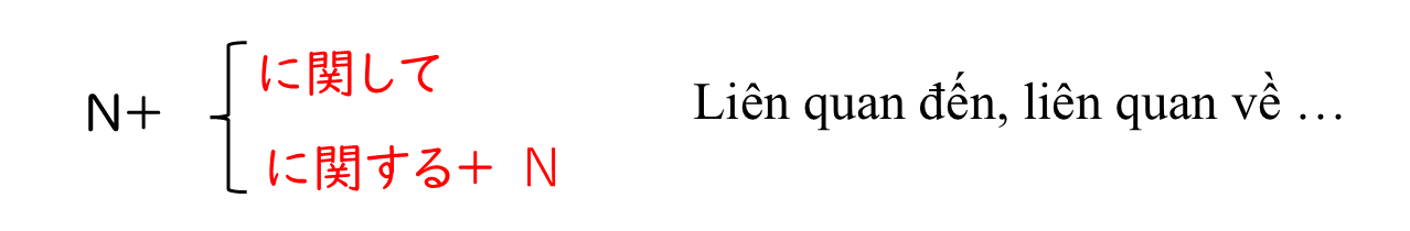 Giống với “〜について”, dùng khi nói nội dung sẽ làm chủ đề câu chuyện hoặc điều tra tìm hiểu. Thường sử dụng trong điều tra, nghiên cứu, hoặc thông báo, v.v…