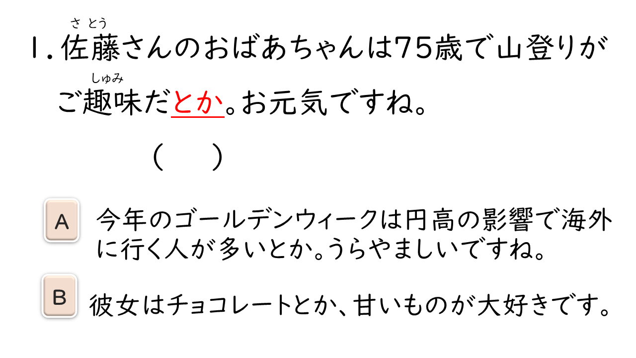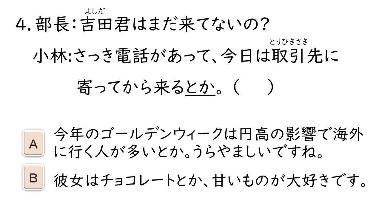 Được sử dụng trong mẫu câu “ ~とか言っていた ” khi nói thông tin mình đã nghe. Thường sử dụng với ý có thể không phải là thông tin chính xác. Cũng có khi lược bỏ từ “言っていた”.