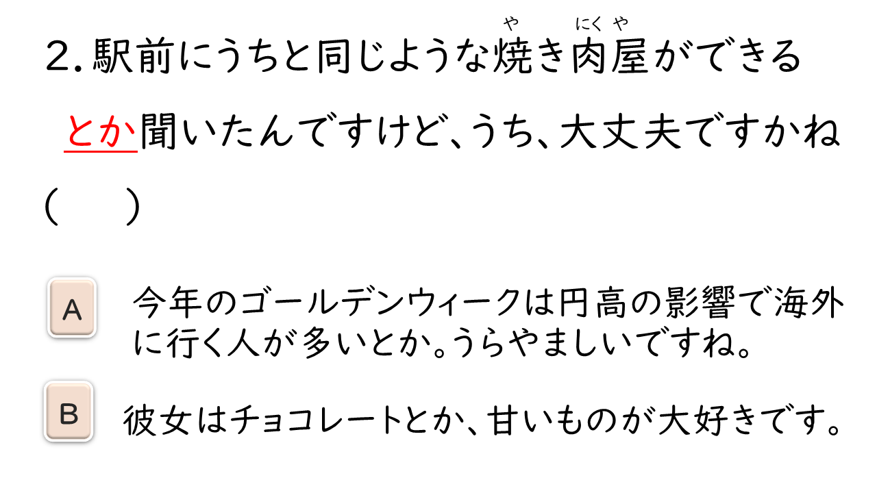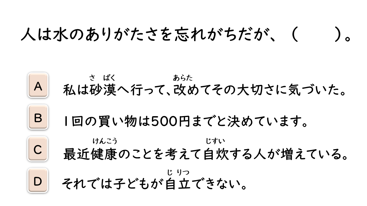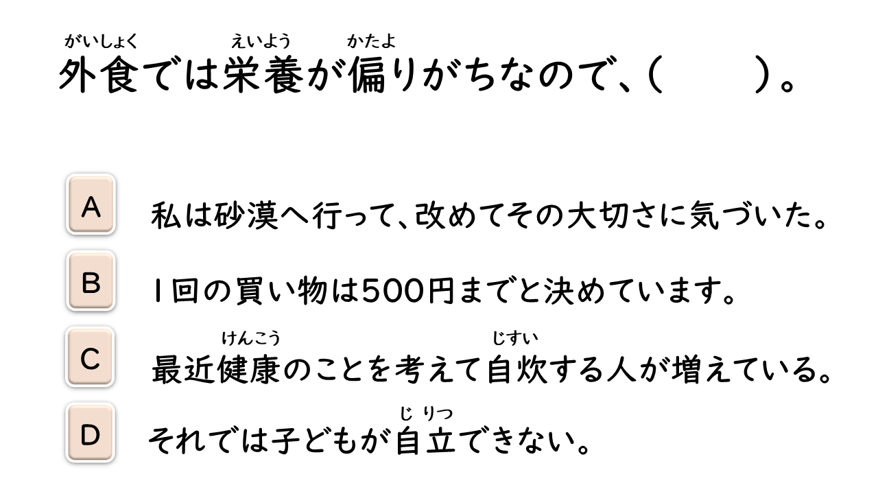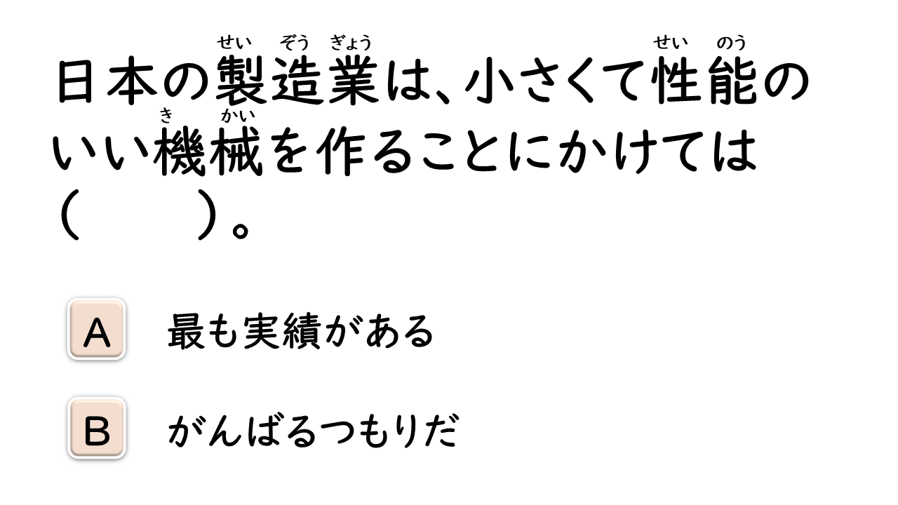軽量化(する) 業界 流れ ウォーキングシューズ 実績 実績 視点 獲得(する) 見た目 重視(する) 決め手 熱中症 円高 うらやましい 焼き肉屋 夕暮れ マニュアル 展覧会 展示(する) ~の右に出る者はいない トップレベル 製造業 若干名 採用(する) 収容(する) マーケティング 整備(する) 意思 語解(する) 食生活 カルシウム 補う 缶詰 差し出す 戸惑う 余計(な) 口を出す ありがたい 偏る 砂漠 自炊(する) 自立(する) にきび 手が伸びる 疑う (安さに)ひかれる 夜が明ける