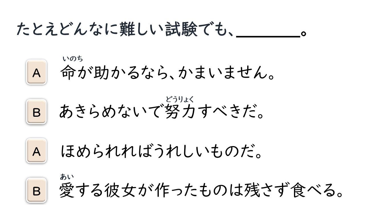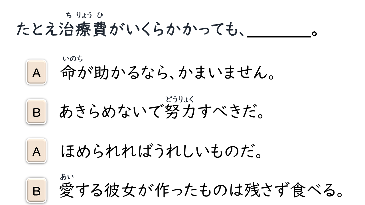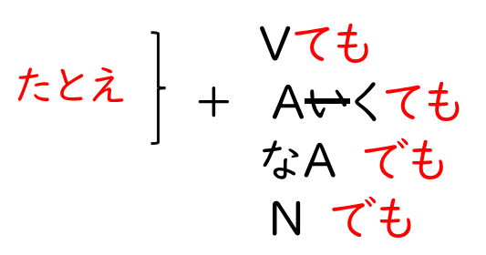 たとえ〜ても có nghĩa là “giả sử có ~ đi chăng nữa cũng”, sử dụng khi muốn nói một cách mạnh mẽ rằng “bất cứ trường hợp nào cũng”.