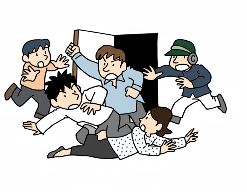 たとえどんな事情があっても、 男2人で女性に暴力を振るうなんて許しがたい奴らだ。 絶対助け出す。 俺は勇気を出して、 2階へ続く階段を上った。 突き当りの部屋のドアから光が漏れている。 俺はドアを思い切り開けて部屋に飛び込んだ。 そして叫んだ。