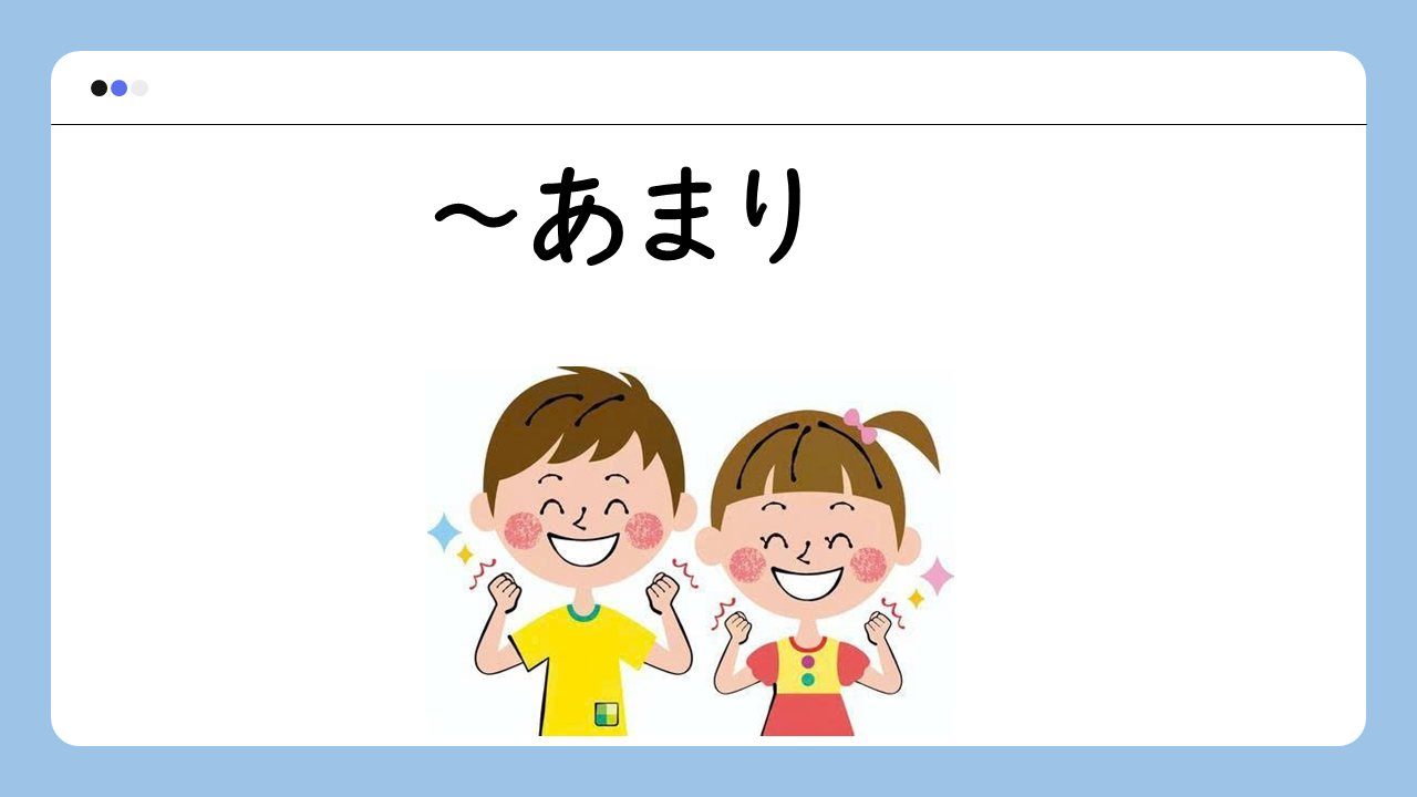 〜あまり sử dụng khi muốn nói rằng “vì quá 〜 nên kết quả là …”. Thường dùng khi kết quả không tốt.