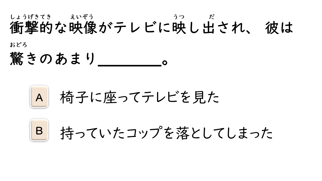 | しょうげきてきな | 衝撃的な | Xung Kích Đích | Sốc, tác động mạnh |