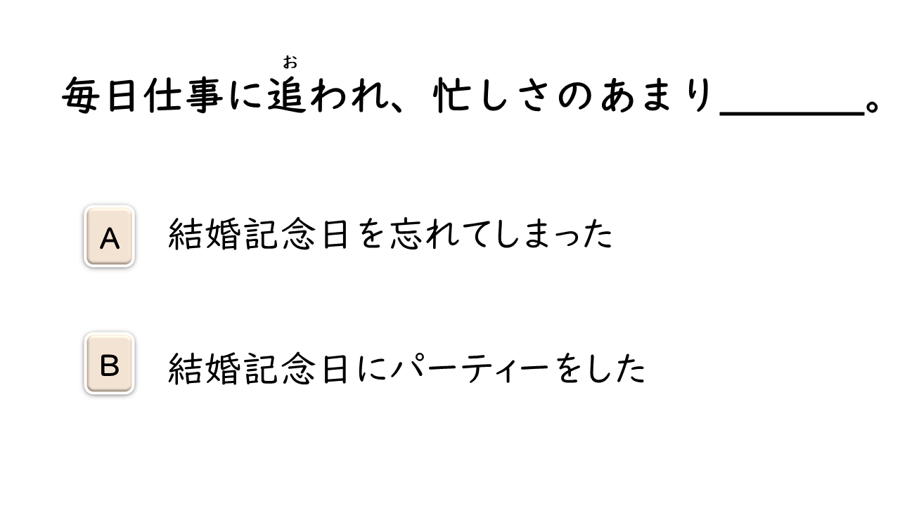 「〜あまり…」は、「非常に〜で…の結果になった」と言いたいときに使う。よくない結果のときに使うことが多い。