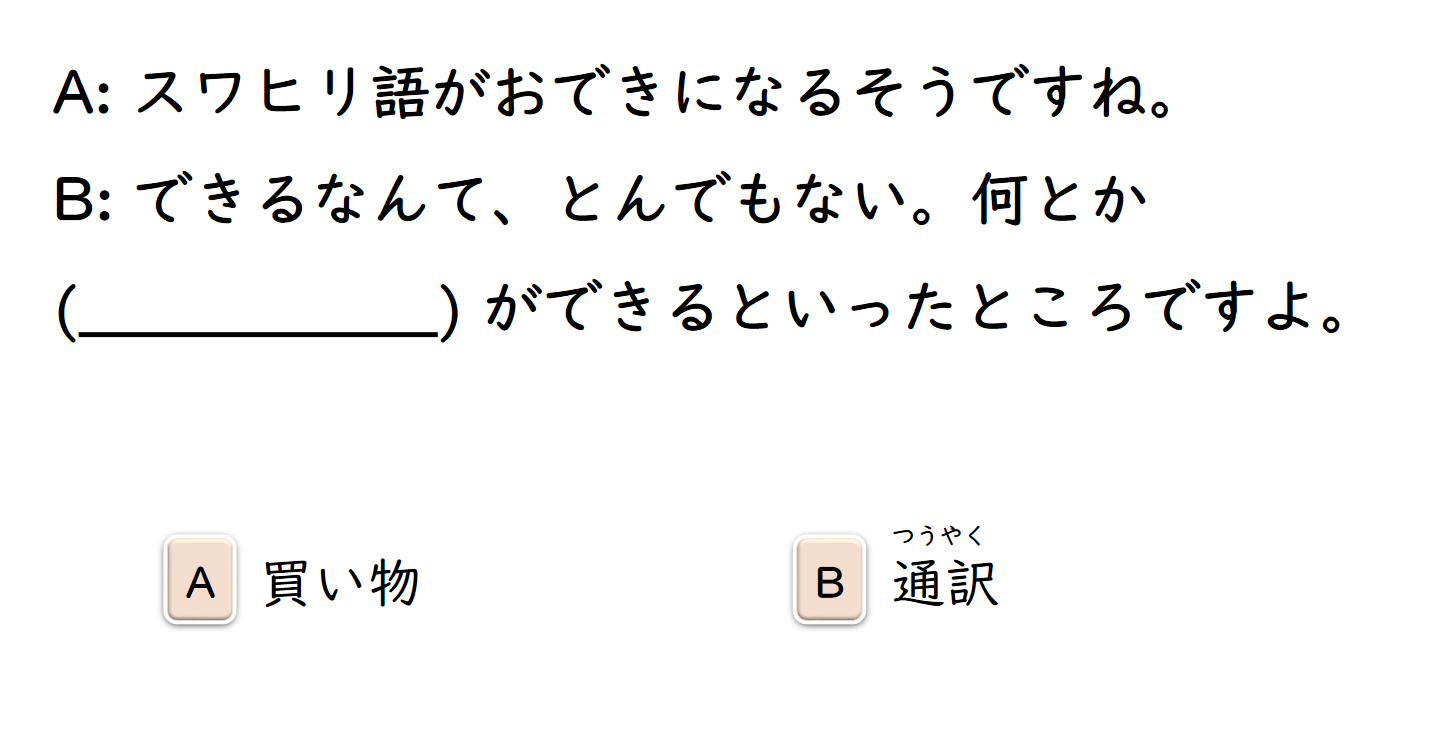 - A:運動会、嫌だな。ビリだったら恥ずかしいし……。