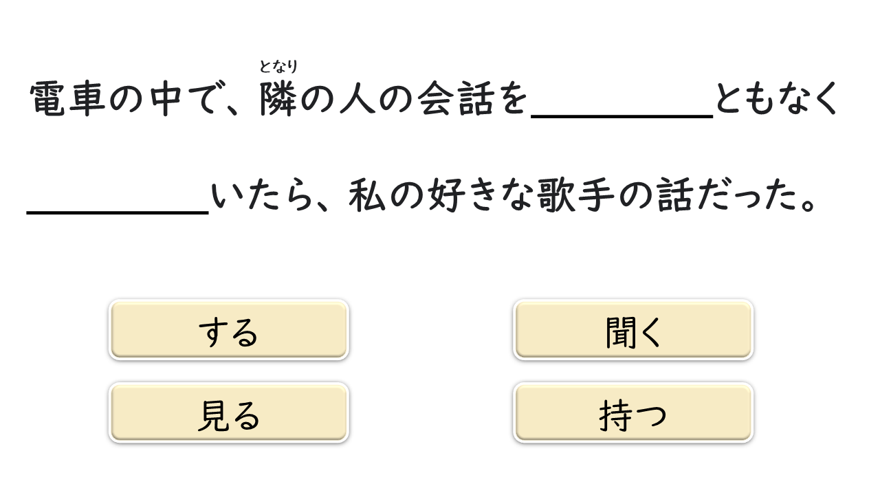 2. 聞くともなくラジオを聞いていたら、故郷の町の名前が出てきて おどろ いた。