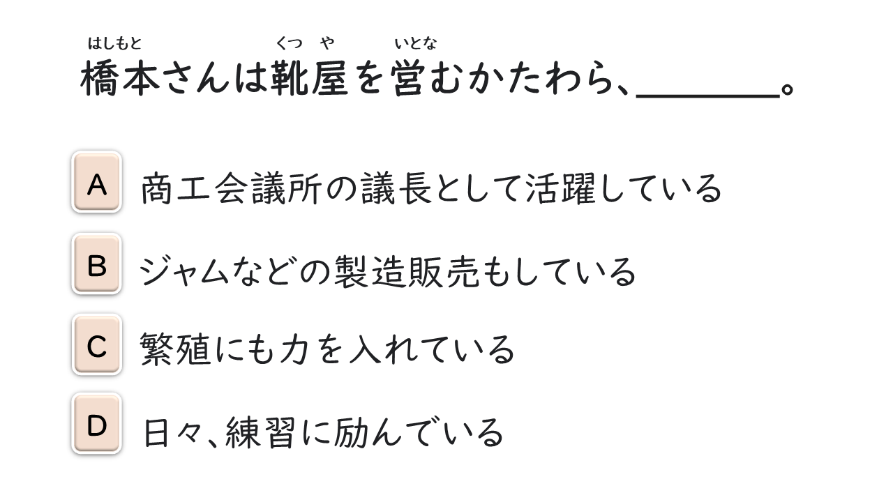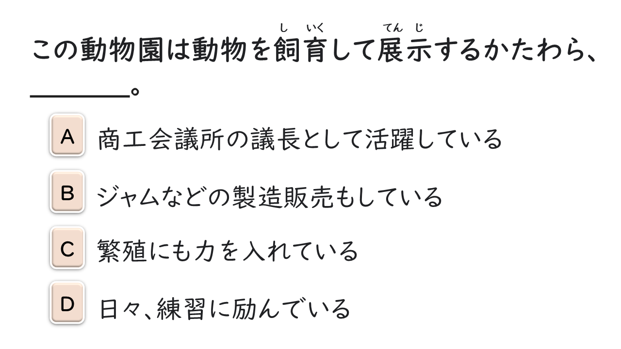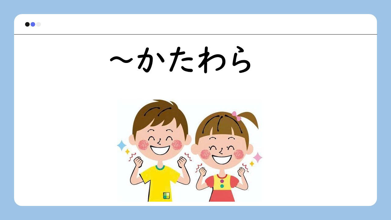 「AかたわらB」は「Aをしながら、他のこと(B)もしている」と言いたいときに使う。
