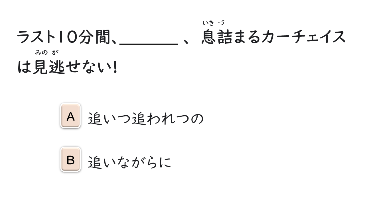 Cuộc thi marathon hôm qua đã diễn ra vô cùng gay cấn, hai bên thay nhau vượt lên vượt xuống cho đến tận phút cuối. - 冗談めいた口調だったが、「10年後は俺が社長かもね」と言った彼の目は真剣そのものだった。
