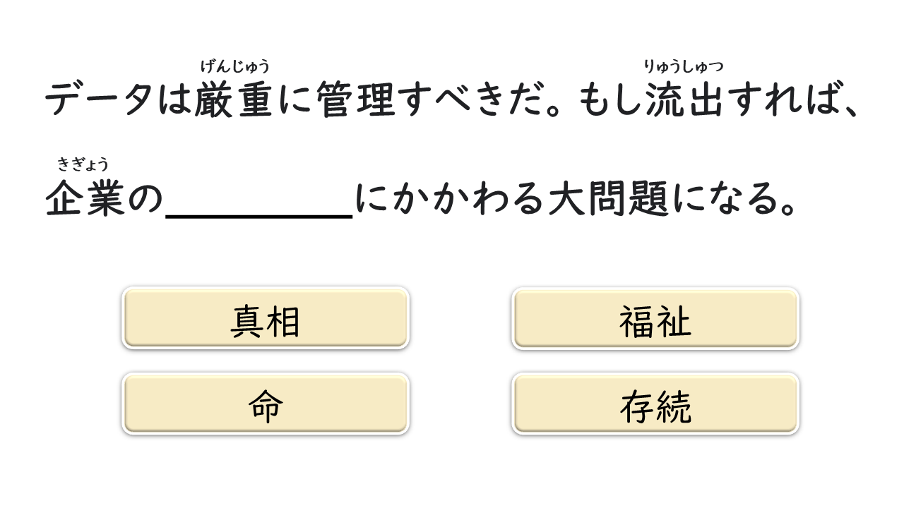 トリアージ 救命救急 患者 治療 優先順位 災害 医療設備 スタッフ 対応 限界 重傷者 緊急時 速やかな 決断 迫る 一刻も早い 処置 軽傷者 搬送 死亡 非常な 行為 現場 究極 選択 冷静に 受け止める 災害時 観客 退出(する) 人手 宝石 発行 値がつく 寄付 人間形成 公表(する) 少子高齢社会 対応(する) 貿易 (仕事に)就く 医療ミス 患者 事態 特定(する) 厳重に データ 管理(する) 流出(する) 企業 高齢者 需要 真相 福祉 存続 火災 非常時 高度経済成長期 高速道路 整備 不況下 順調に 業績 キャラクターグッズ 消費 低迷(する) 根強い 遠望 押し寄せる 悪天候下 性能 企画 誤解を招く 境遇