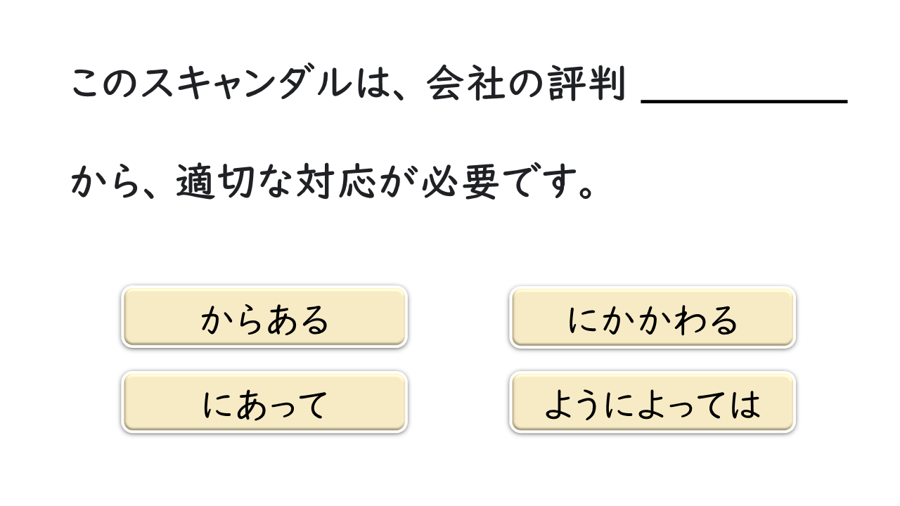 「~にかかわる」は「命にかかわるけが」のように「~に重大な影響がある」と言いたいときに使う。「教育にかかわる仕事」のように「~に関係がある」と言いたいときにも使う。