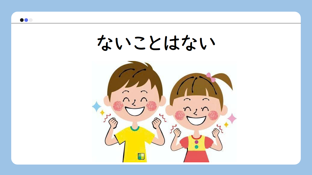~ないことはない dùng khi không thể nói rõ ràng rằng ”tuyệt đối là~”, hoặc không tự tin và không muốn nói rõ ràng.