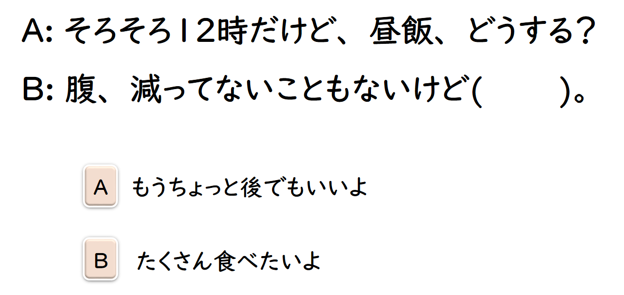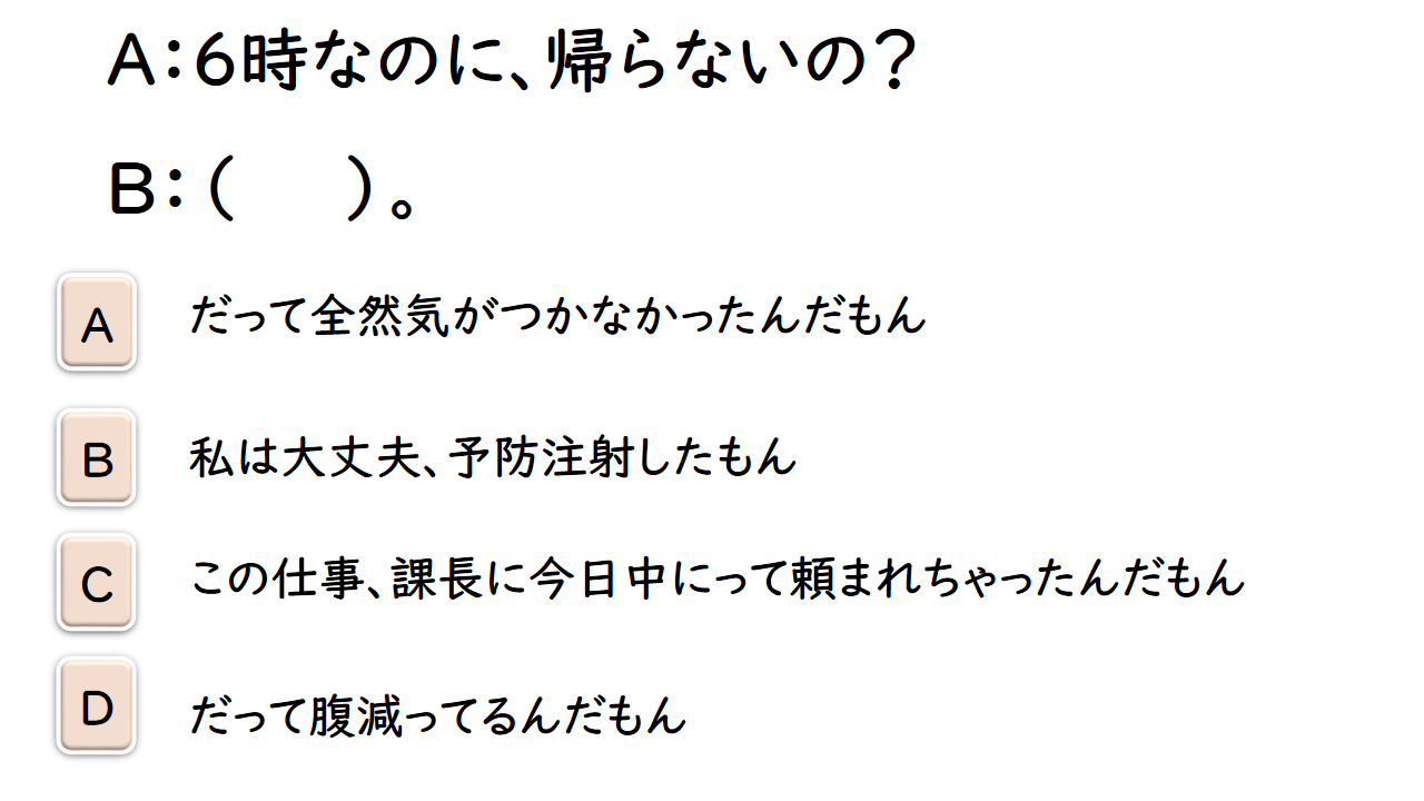 B:でも、午後から大事な会議があるから、帰るわけにはいかなくて…。