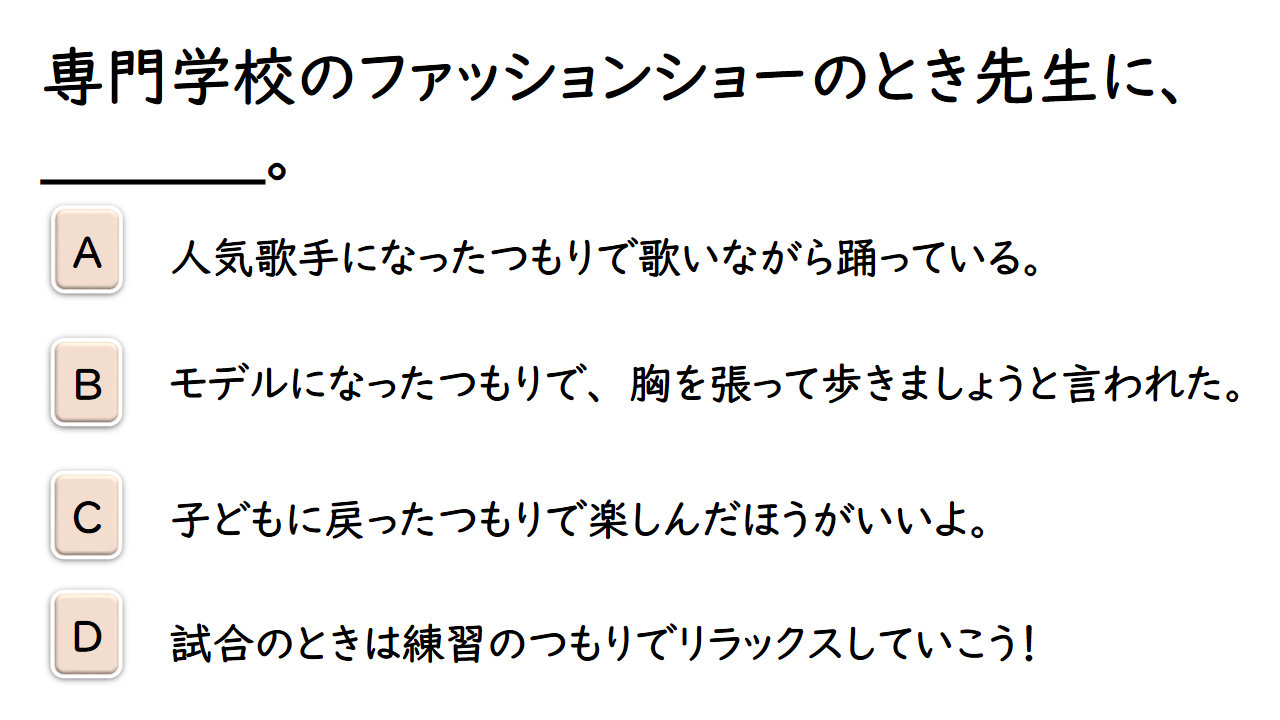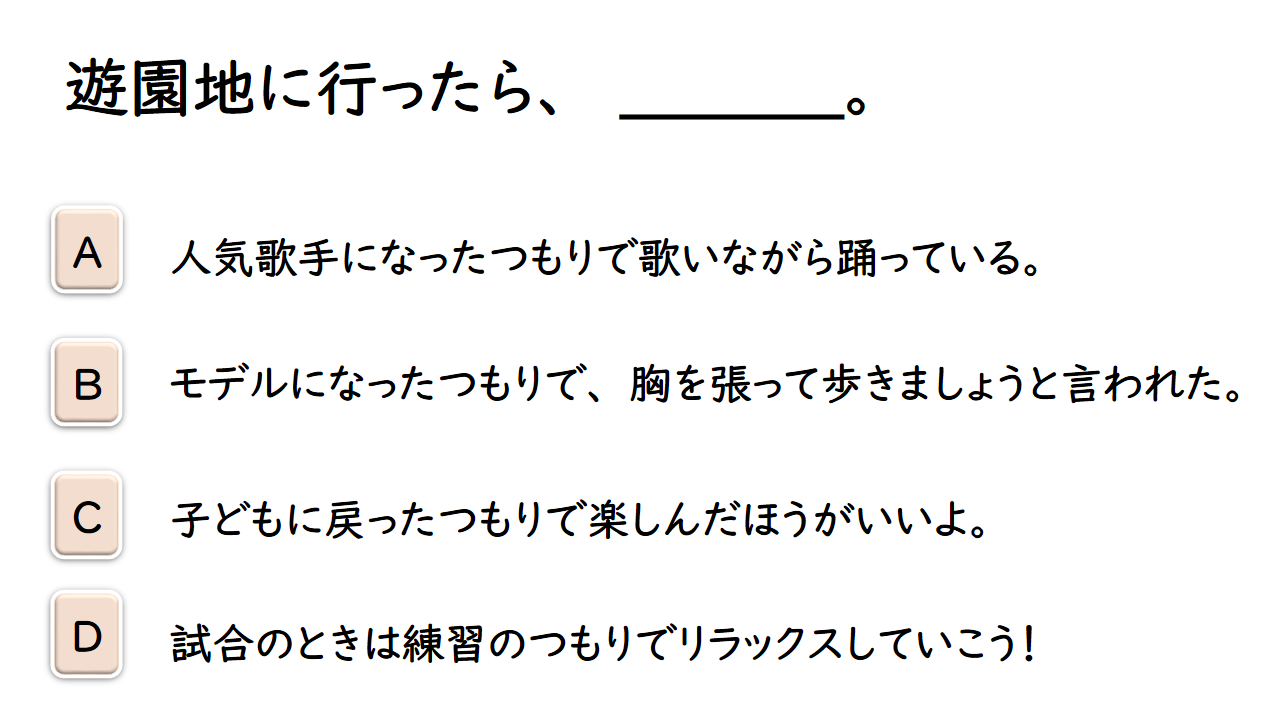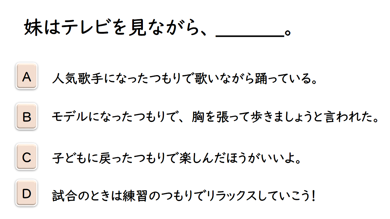 ⑦ Vた/ イ形/ナ形 な/ N の+つもり