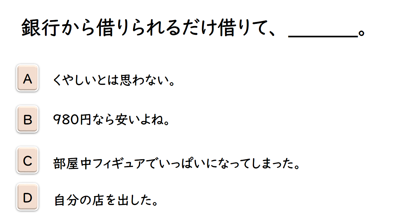 2.A:ミュージカル見たいんだけど、チケット、なかなか買えないんだよね。