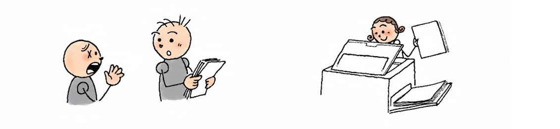 この 会社かいしゃは 会議室かいぎしつが ありません。社長室しゃちょうしつで 会議かいぎをします。会議かいぎは みじかいです。月曜日げつようびから木曜日もくようびまで 残業ざんぎょうしてもいいですが、金曜日きんようびは いけません。みんな 6に かえります。社長しゃちょうが て います。