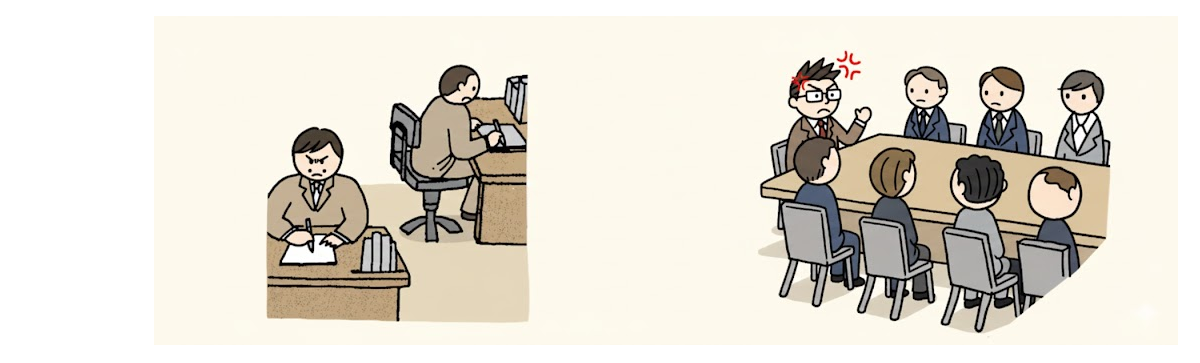この 会社は 会議室かいぎしつが ありません。社長室で 会議かいぎをします。会議かいぎは みじかいです。月曜日から木曜日まで 残業ざんぎょうしてもいいですが、金曜日は いけません。みんな 6時に 帰ります。社長が 見て います。