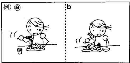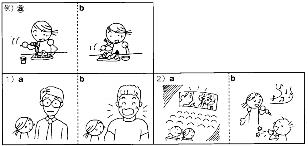 | a. のみもの | b. たべます | c. たべもの | d. のみます |