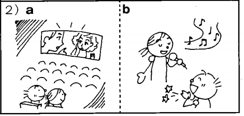 2) ● ● c.「クイーンビー」の コンサートは 楽しいですから。