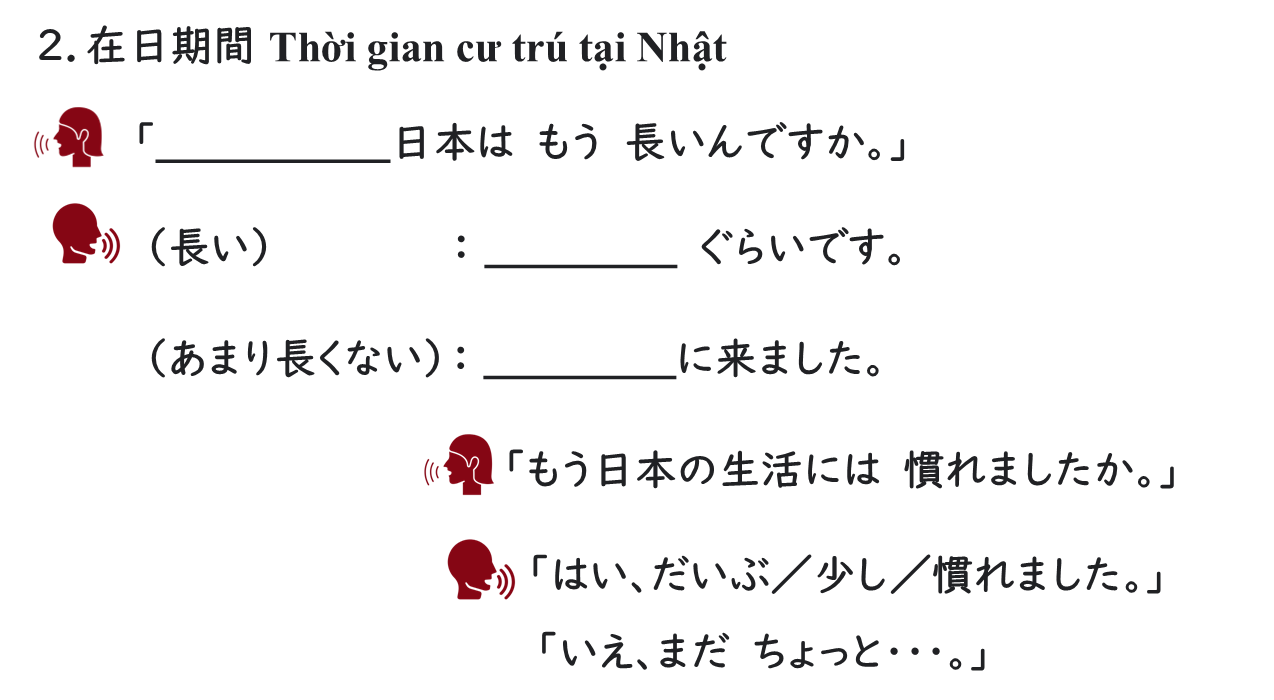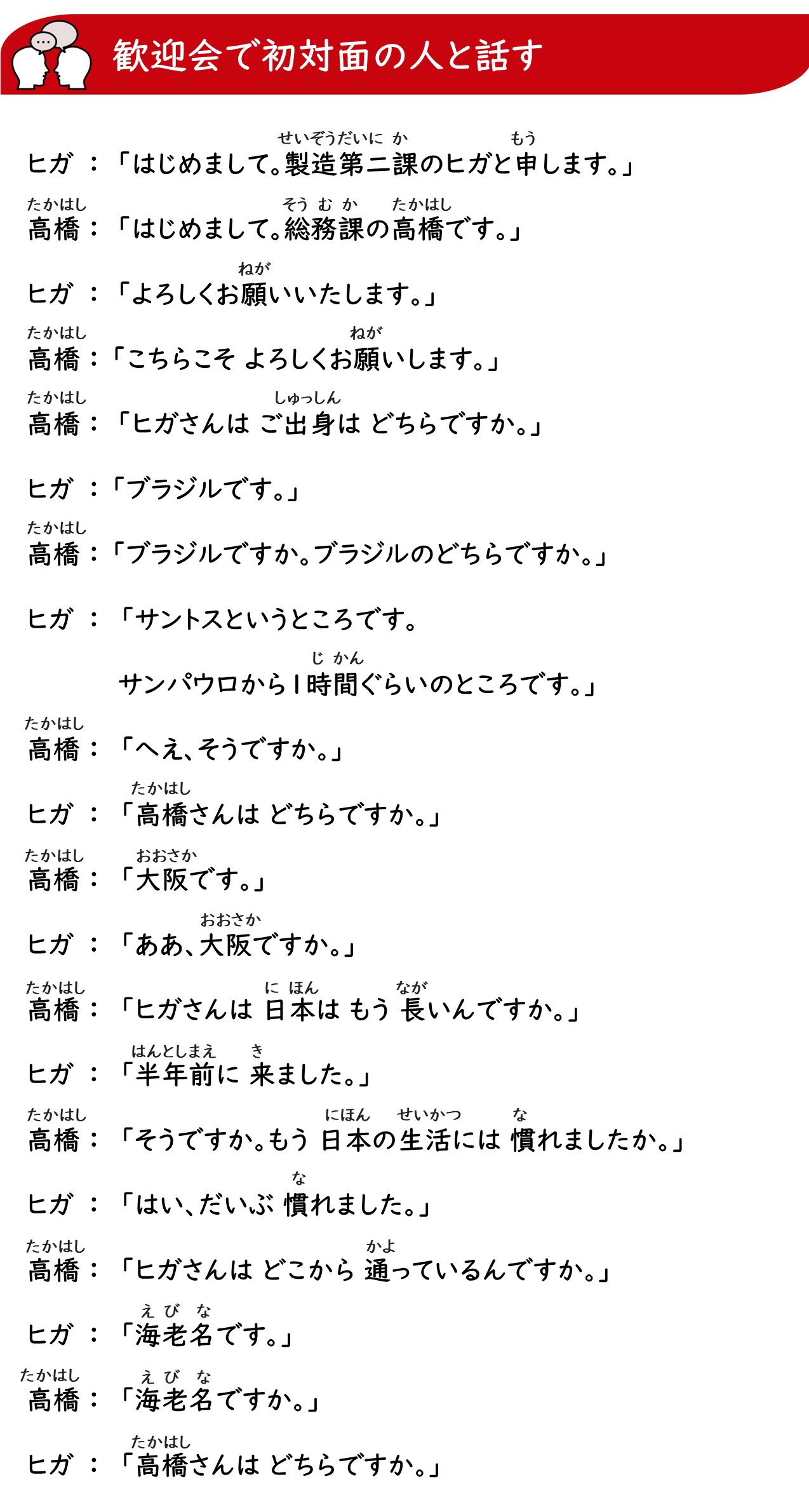 【第2話】歓迎会で初対面の人と話す ● 会話● 会話の表現 例:サントスは サンパウロから 1時間ぐらいのところです。コーヒーが 有名です。 ♦ 質問に 答えてくだいさい。 ① 日本にどのくらい 住んでいますか。 ② いつ 日本に 来ましたか。 ● 話しましょう
