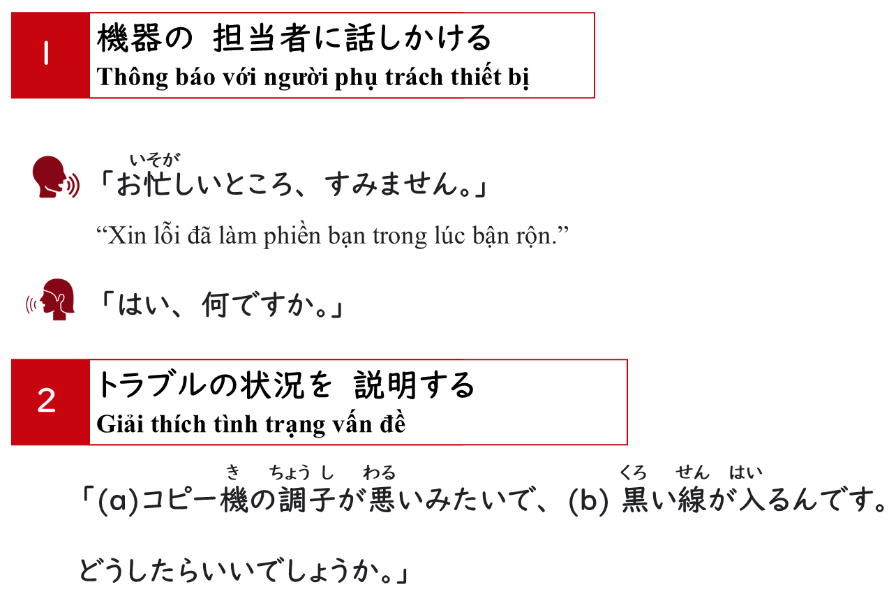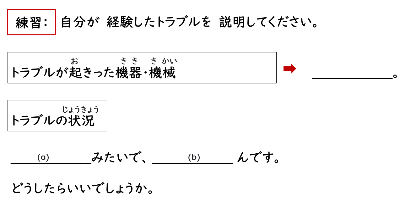 機器きき機械きかいのトラブルが 発生はっせいしたことを 担当者たんとうしゃに つたえてください。