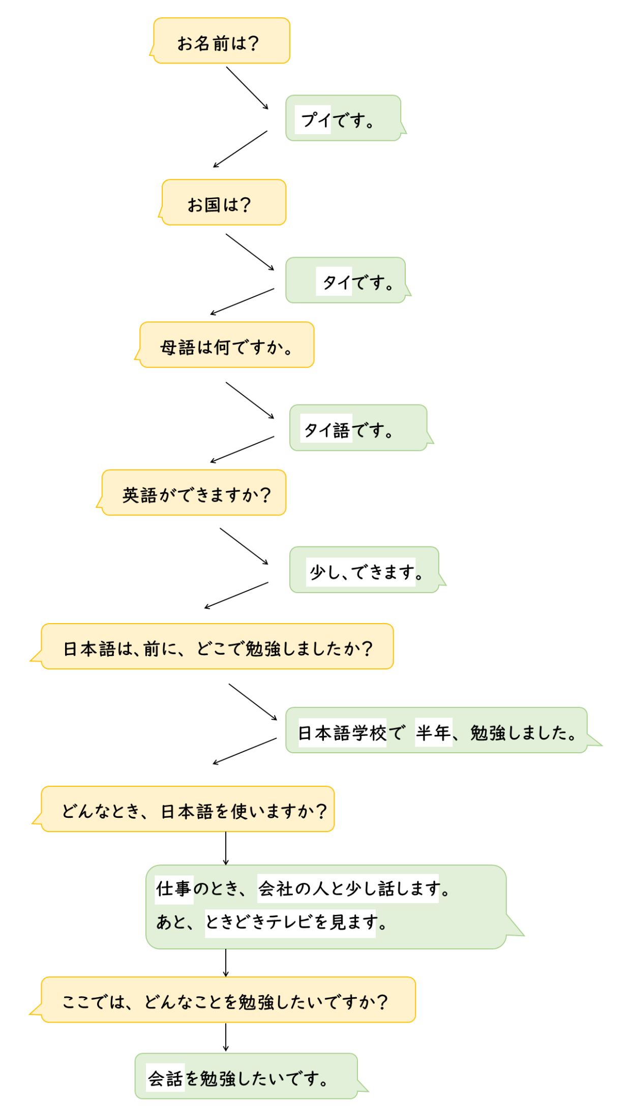 1人が日本語教室の事務の人になって質問しましょう。もう1人はそれに答えましょう。