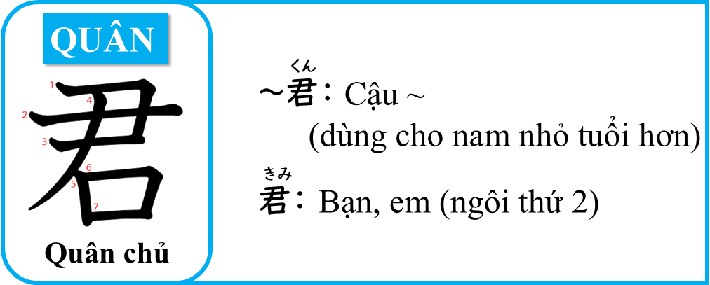 くん - QUÂN - Cậu ~ (dùng cho nam nhỏ tuổi hơn)