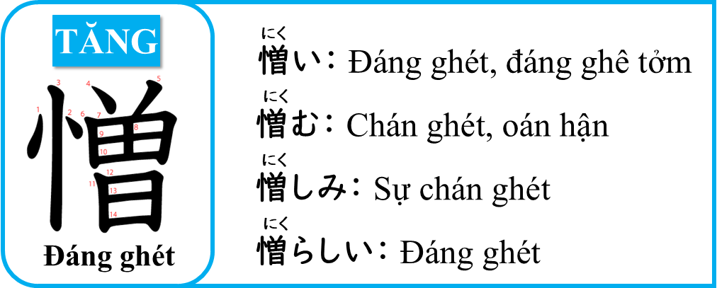にくむ - TĂNG - Chán ghét, oán hận, ghê tởm