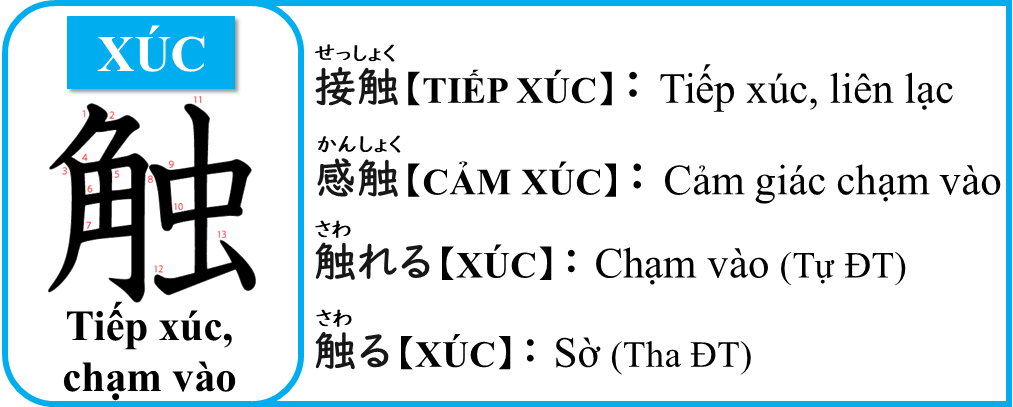 さわる - XÚC - Sờ, chạm vào, phạm vào (tha động từ)