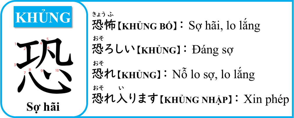 きょうふ - KHỦNG BỘ - Sự sợ hãi, lo lắng, mất tinh thần