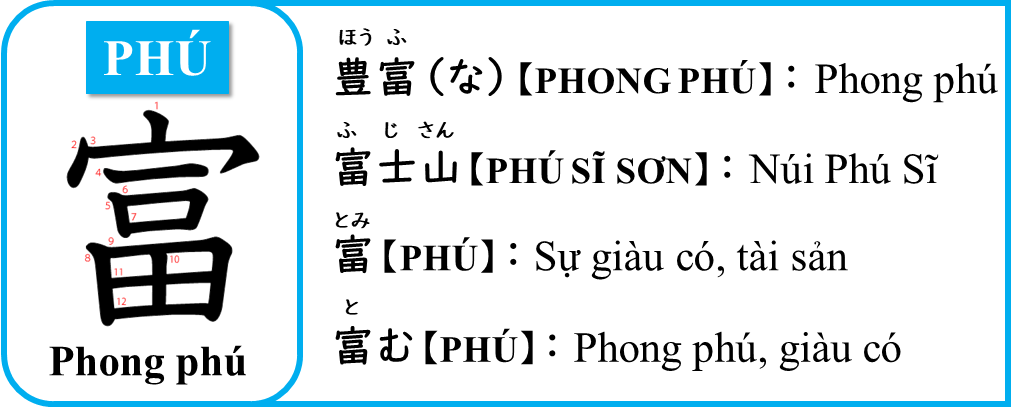 PHÚ - とむ - Phong phú, giàu có