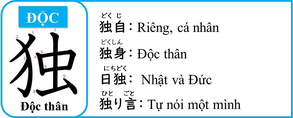 どくじ - ĐỘC TỰ - Riêng, cá nhân, độc đáo, độc lập