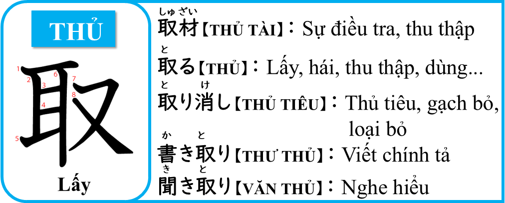 とる - THỦ - Lấy, hái, thu thập, dùng...
