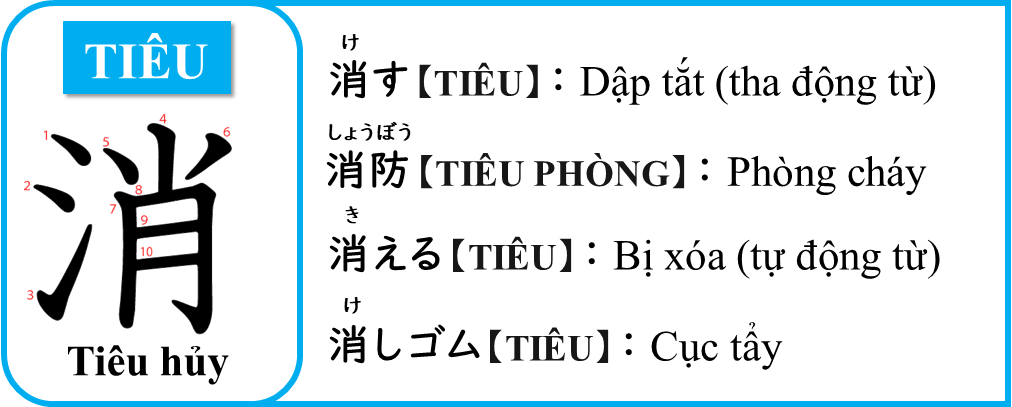 けす - TIÊU - Dập tắt, xóa (tha động từ)